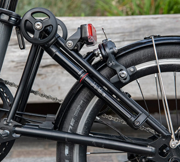 Our latest Brompton Pump is by far the best pump we have ever made. It is super lightweight (less than 100g) and mounts to the frame using the mount provided, so you can load it and only think about it when you need it. It may be small in size, but it’s big in power. Our new Brompton Pump inflates tyres up to 160 psi and has a longer, more efficient pump stroke. Grab it, pump it, and get back on it.